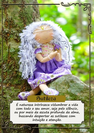 Oráculo das Sutilezas da Vida: Recados Intuitivos são inspirações que nos convidam a sentir que, neste Universo tão vasto, a per cepção do sutil é possível. Especificamente, tal percepção será potencializada por meio da arte de cada carta, bem como das suas respectivas mensagens, contidas e inspiradas ao longo da confecção das bonecas. As cartas têm a intenção de trazer ins piração e beleza, além de proporcionar um momento só seu, único e importante, de conexão interna, viabilizado através da leitura das mensagens e possíveis interpretações.